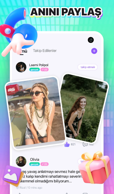 bir yapı sunmaktadır. Kullanıcılar, sadece mesajlaşmak yerine; sohbet odalarına katılabilir, hediye gönderebilir, ilgi alanlarına göre insanlarla tanışabilir ve anılarını paylaşabilir.